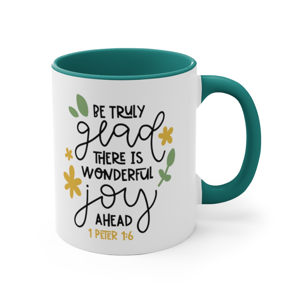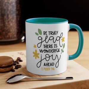 .: Material: white ceramic with colored interior and handle.: One size: 11 oz (0.33 l).: Rounded corners.: C-handle