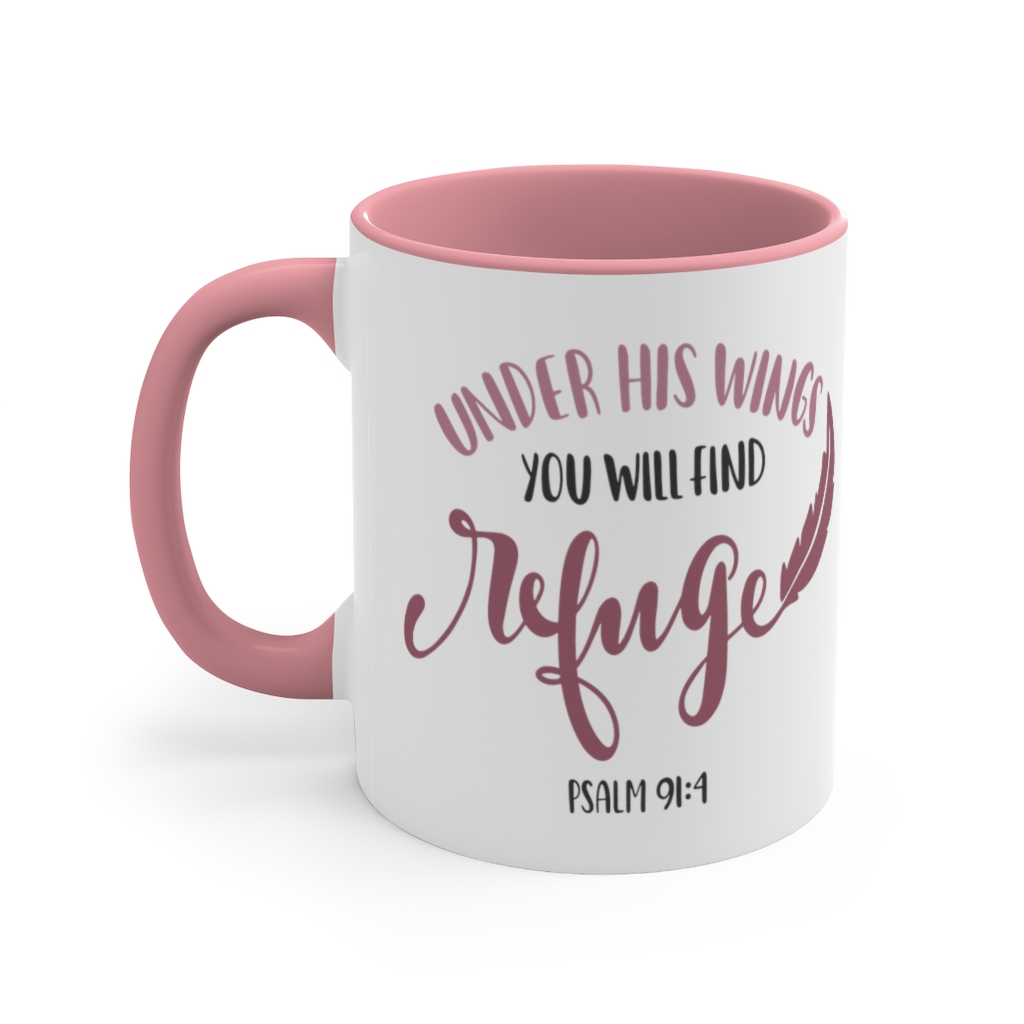 .: Material: white ceramic with colored interior and handle.: One size: 11 oz (0.33 l).: Rounded corners.: C-handle